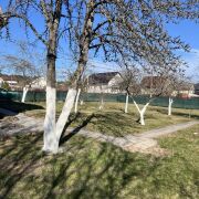 Участок почти 10 соток. Чистый, ухоженный. Много цветов — рододендроны, розы. Растут яблони, груши, сливы, виноград Изабелла и даже грецкий орех.