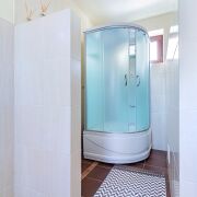 Вода на участке сезонная. Заведена в дом и в отдельное помещение, где сделан санузел и душевая. Там же можно сделать баню — всё под рукой.