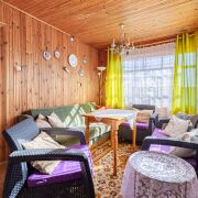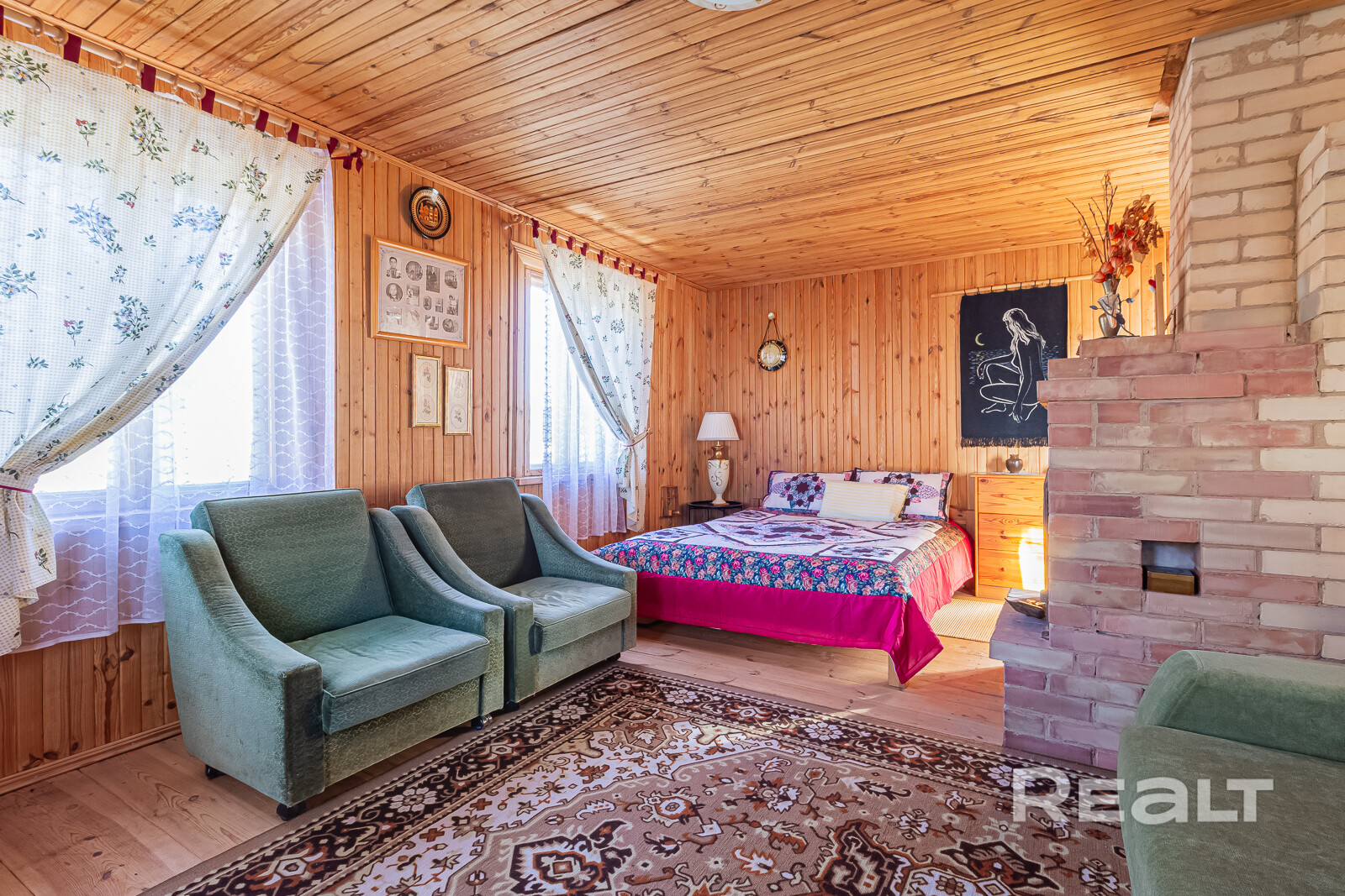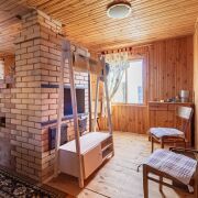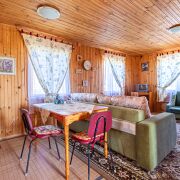 Фундамент серьёзный — из блоков ФБС, высокий цоколь. На нём сруб в отличном состоянии. Пол на первом этаже тёплый, сухо. Планировка продуманная: кухня со столовой отдельно, гостиная со спальным местом — своё пространство. Всё как в хорошей квартире, только за городом. Потолки высокие, есть запас — при желании можно доделать второй этаж и увеличить площадь.