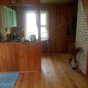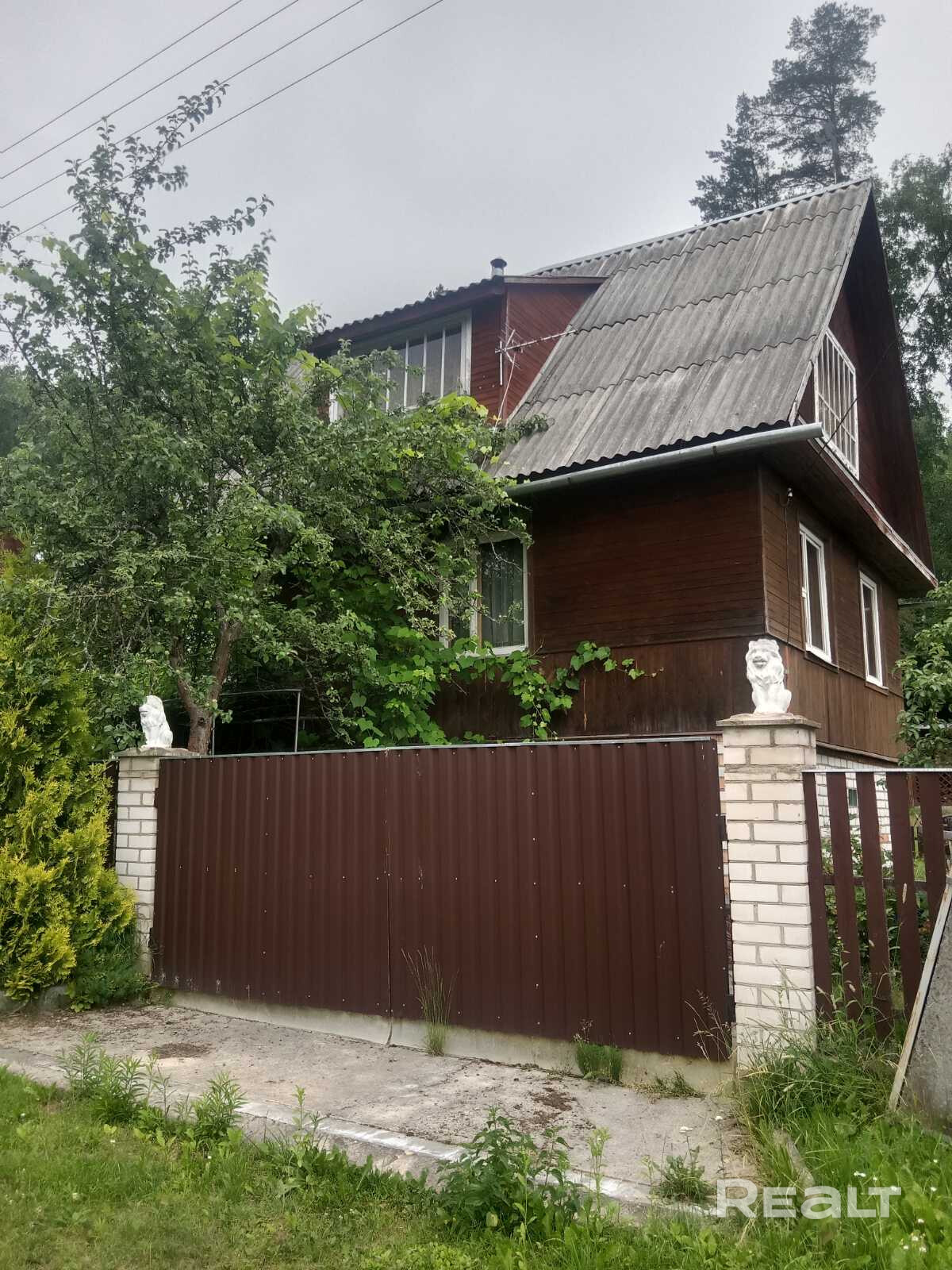 Ищем новых хозяев для дачи. В 30 км от Минска продается дача с баней , до электрички 15 минут пешком. Дом сложен из бревен , снаружи вагонка ,на высоком фундаменте, под домом гараж, внутри всегда сухо, нет сырости и плесени, отличная вентиляция. Отопление печное, есть плита и лежанка. Остается встроенная кухня и вся мебель. На первом этаже - кухня, спальня и гостиная, второй этаж-большая комната. Вода сезонная, введена в дом и баню, есть возможность пробить скважину вместе с соседом.