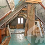 -Двухуровневая бревенчатая дача, крыша шиферная — надёжность и долговечность.