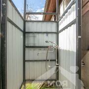 - Общая площадь 57,6 м2 (жилая 24 м2), три комнаты разного размера. Резные деревянные ставни — традиционный стиль, придающий даче шарм и характер.