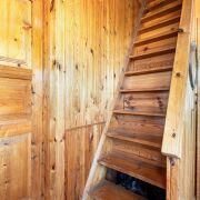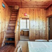 - На третьем ярусе расположена просторная комната с многочисленными спальными местами, оснащенная стеклопакетами и лоджией с выходом из основной спальни.