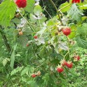 - На участке установлена просторная теплица площадью 35 м2 ( 7х5м). Теплица имеет каркас из уголка, стеклопластиковую крышу, стены из поликарбоната.