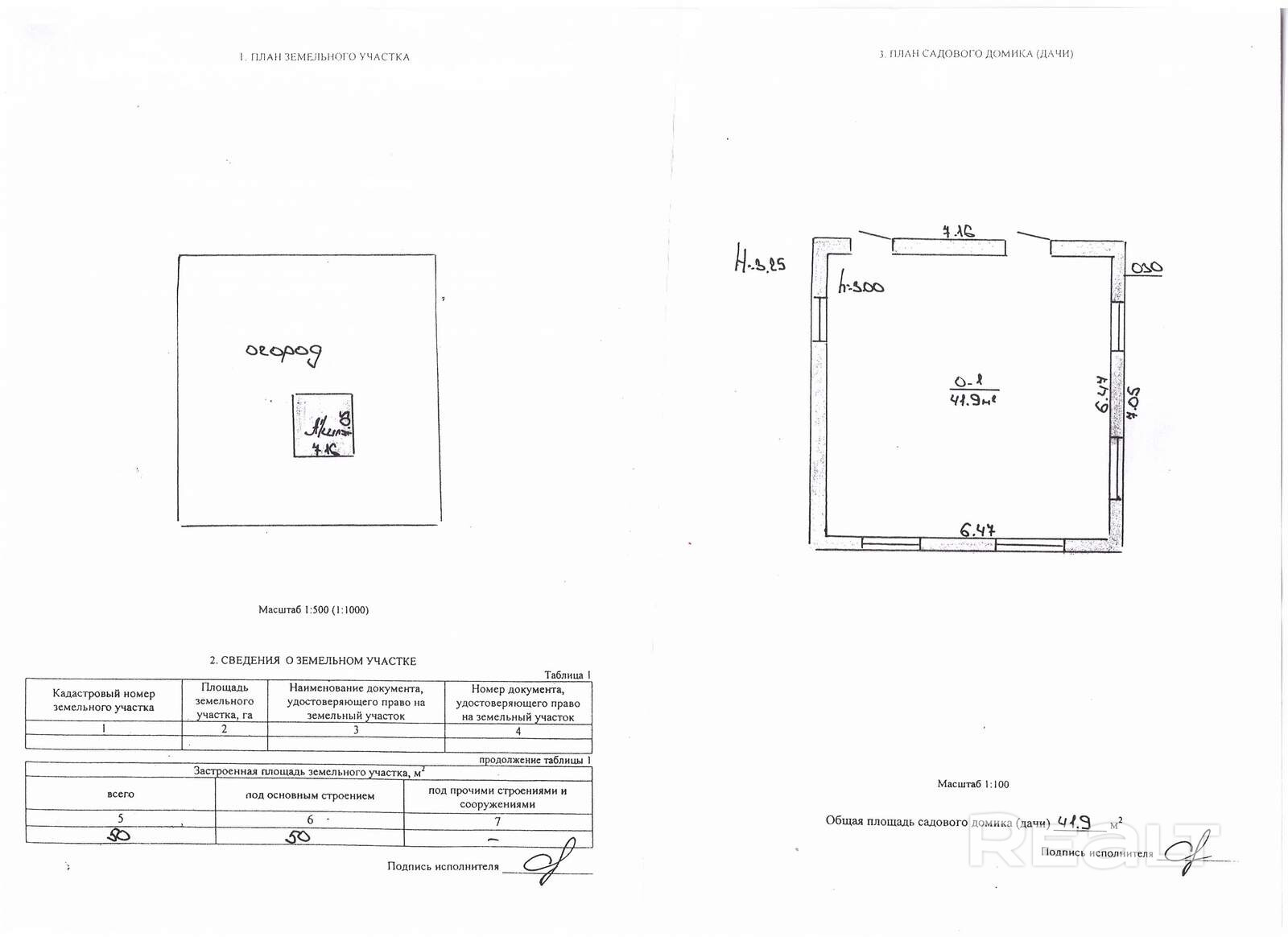 - Площадь участка
