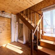 Двухэтажный дом площадью 61,3 кв.м., 4 жилые комнаты, кухня, душевая — всё на месте. Удобная планировка, много окон — светло, тепло, уютно круглый год. Отопление — печное, идеально для зимних вечеров. Вода — сезонная, заведена в дом, есть бойлер. Канализация — местная.