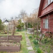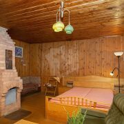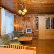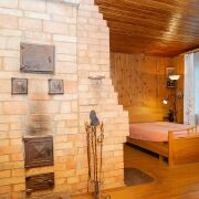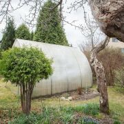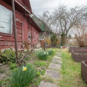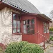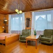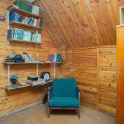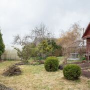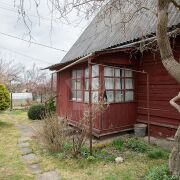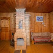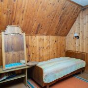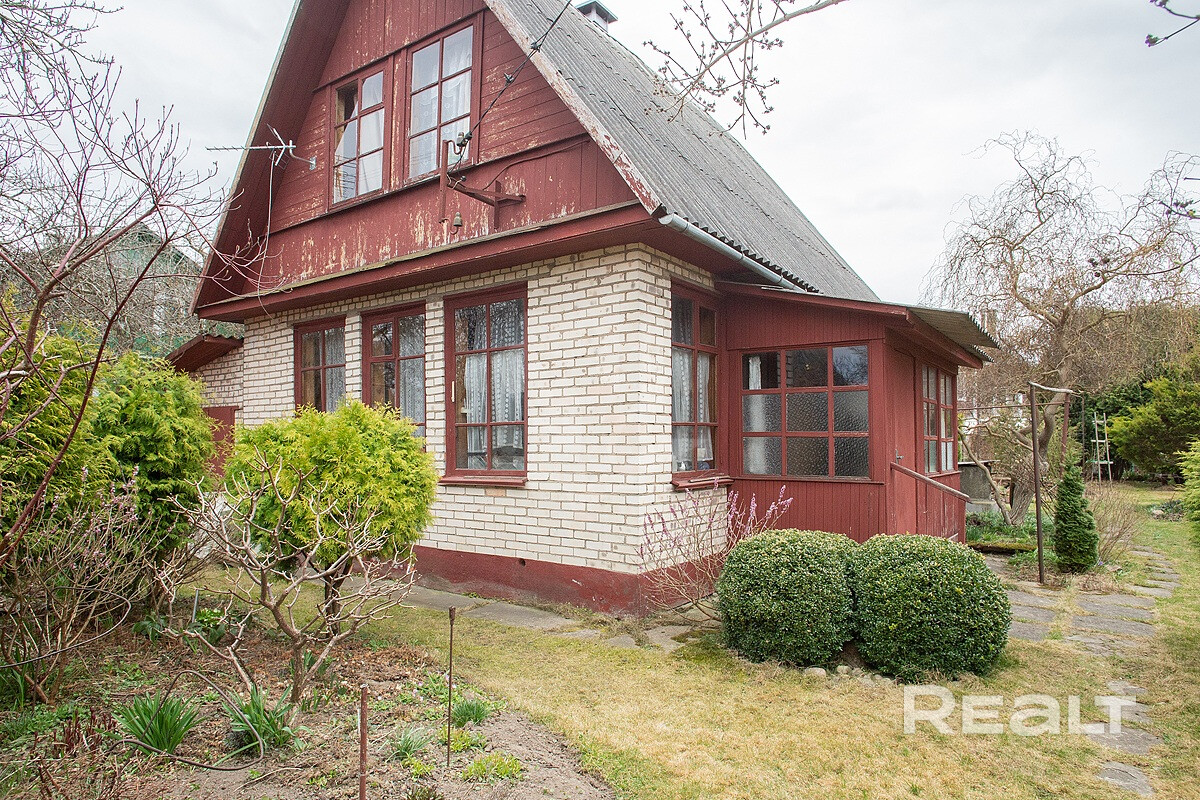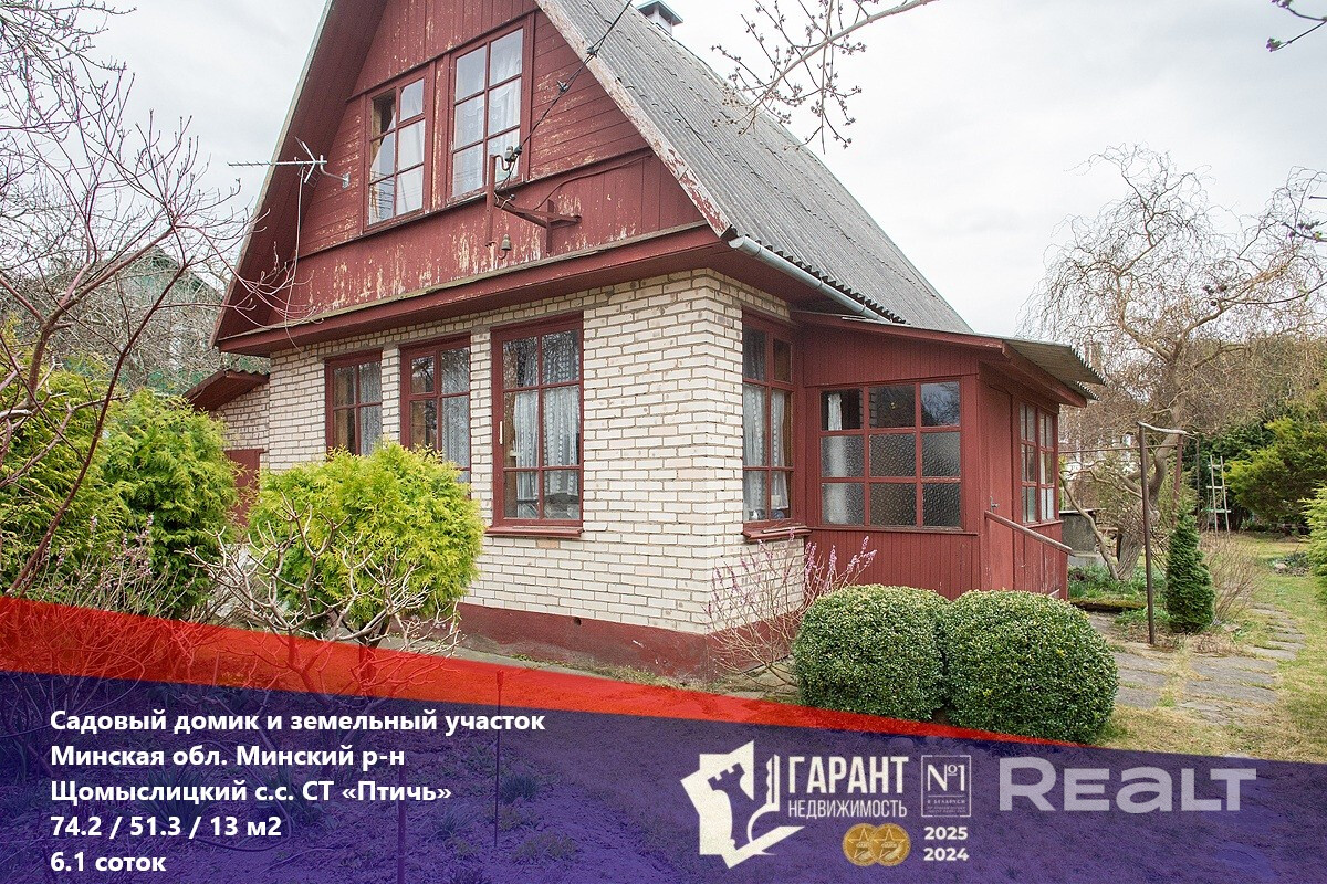 Аккуратный садовый домик на участке в 6 соток: СТ «Птичь» (Атолино), Брестское направление. Первый этаж – бревенчатый. Кухня, гараж и сарай – из белого кирпича. Два жилых этажа. На первом – просторная 13-ти метровая кухня и 24-х метровая гостиная. В гостиной – печь и камин. На втором этаже – две отапливаемые спальни. Высота потолка – 2.7 метра.