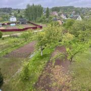 Участок 10 соток, правильной формы, расположен на возвышенности, есть беседка. Плодовые деревья: яблони, груша, сливы, вишня и кустарники боярышника и голубики, небольшой огород.