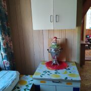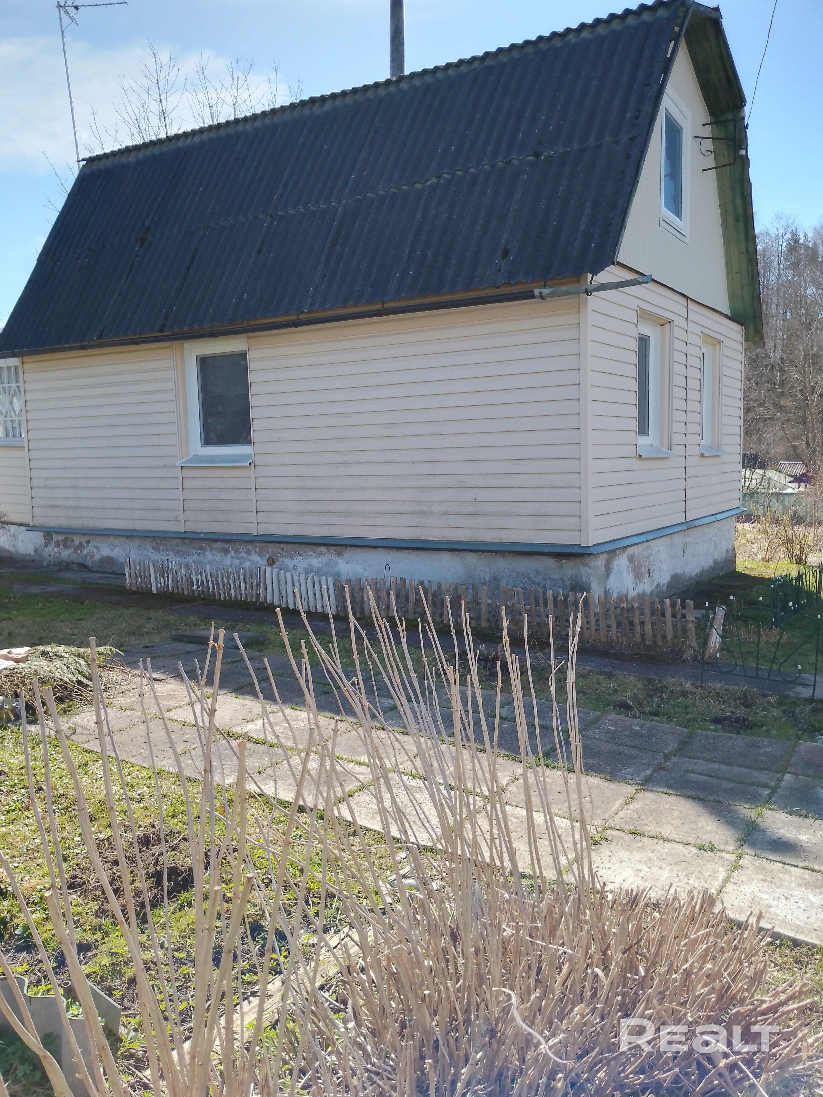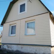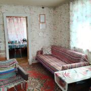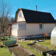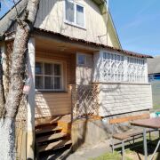 Дача - 41 кв.м., три жилые комнаты (10.9м.кв. + 13.3 м.кв.71 м.кв.), кухня (5.2 м.кв.), веранда (4.6 м.кв.). Высокий бетонный фундамент. Дом изначально каркасно-засыпной, обложен кирпичом + обшит панелями ПВХ с утеплением.  Перекрытия деревянные, полы дощатые, кровля из шифера.  Оконные проемы – стеклопакеты ПВХ + деревянные двойные рамы. В доме есть рабочая печь, обогревающая весь первый этаж. В кухне: настольная газовая плита на 2 конфорки (газовый баллон), набор кухонной мебели, мойка с тумбой и электрическим водонагревателем, стол кухонный. В жилых комнатах остаётся мягкая мебель и кровати.