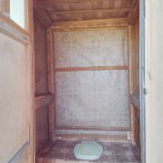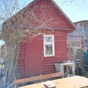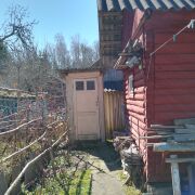 На участке располагается сарай 15 м.кв. из бруса, на бетонном фундаменте. Кроме хранения инструментов, садового инвентаря, в сарае оборудовано место для принятия летнего душа. Есть электрический водонагреватель, и металлический поддон. Также к сараю примыкает уборная.