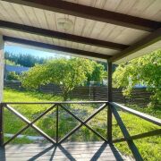 Дом кирпичный утеплен оштукатурен. Первый этаж кухня-гостиная, санузел, второй этаж- спальня. В доме все коммуникации: круглогодичная вода - скважина, канализация- станция биологической очистки, есть камин, терраса, интернет. Участок 8 соток со взрослыми плодовыми деревьями. Асфальт до дома, въездные ворота.