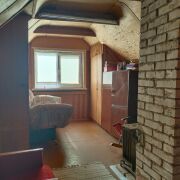 Вода сезонная, введена в дом, туалет на улице. Обогрев печью. На первом этаже гостиная ,кухня,веранда. На втором мансардном этаже две комнаты.