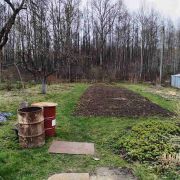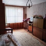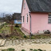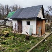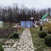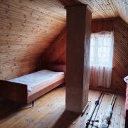 Дом стоит на участке 12 соток. В доме на первом этаже большая жилая комната, кухня, прихожая.