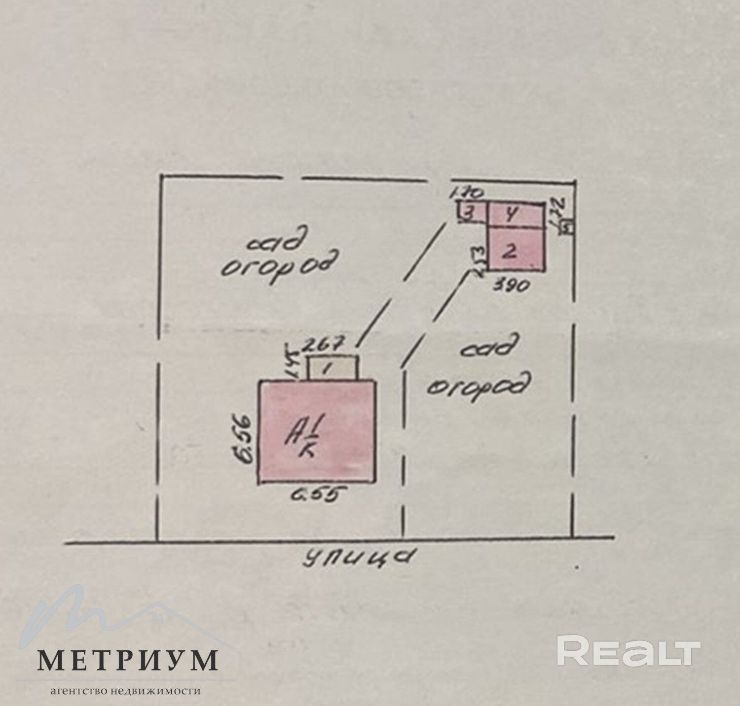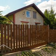 Участок ровный, солнечный, огорожен забором, металлические ворота, калитка.