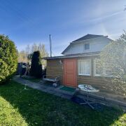 Добротный дачный дом 85,1 кв. м. На первом этаже большая столовая, санузел (туалет и душевая комната), кухня и зал с камином, на втором этаже – две спальни. Имеется необходимая мебель и техника (телевизор, холодильник, микроволновая печь, плита (газовый баллон).
