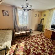 Дом стоит на фундаменте, стены – газосиликатные блоки, оштукатурены, утеплены, покрашены, окна – стеклопакеты. Свет (электричество 380 Вт), вода (бойлер) круглогодичная, отопление (во всех комнатах батареи). Котел нужно заменить. Огорожен забором со всех сторон.