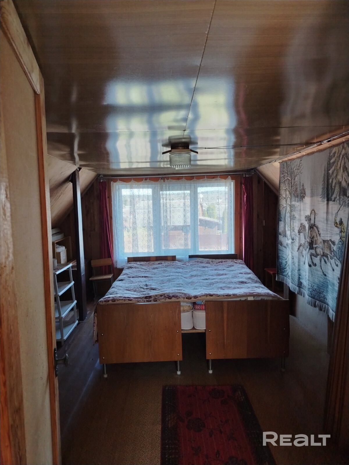 Вода на участке сезонная, водопровод заведен в дом. Материал дома - брус, с внешней стороны дом обшит половой доской и сайдингом. Внутренняя отделка- вагонка. Остекление - двойные стеклопакеты. Дача с мансардой. В доме есть погреб. Кухня оборудована газовой плитой с газовым баллоном, отопление - печное. В доме имеется вся необходимая мебель. На участке есть сад. В садовом товариществе работает магазин. Хорошее транспортное сообщение с Минском (автобусы, маршрутки). Прямая продажа.