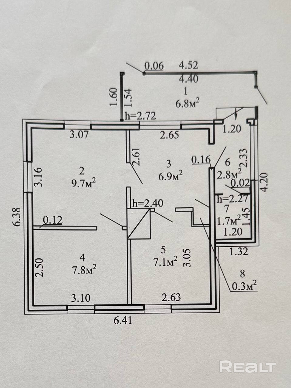 6.9 м²