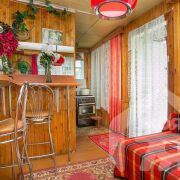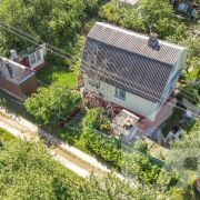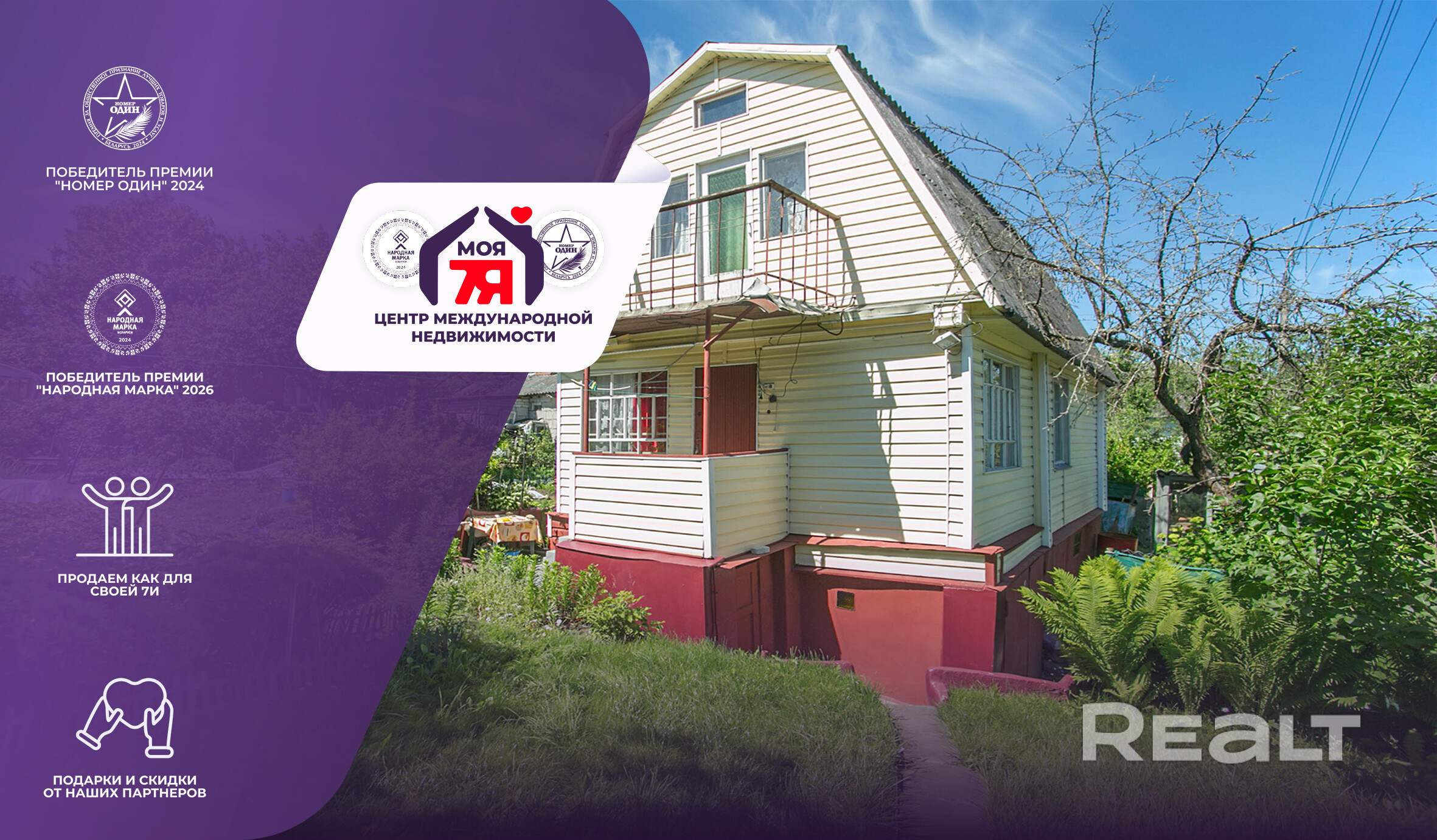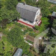 - Двухуровневый бревенчатый  дом, отделан сайдингом 1991 года постройки с общей площадью 44,9 кв.м.  В цокольном этаже расположен гараж и хоз. помещения.