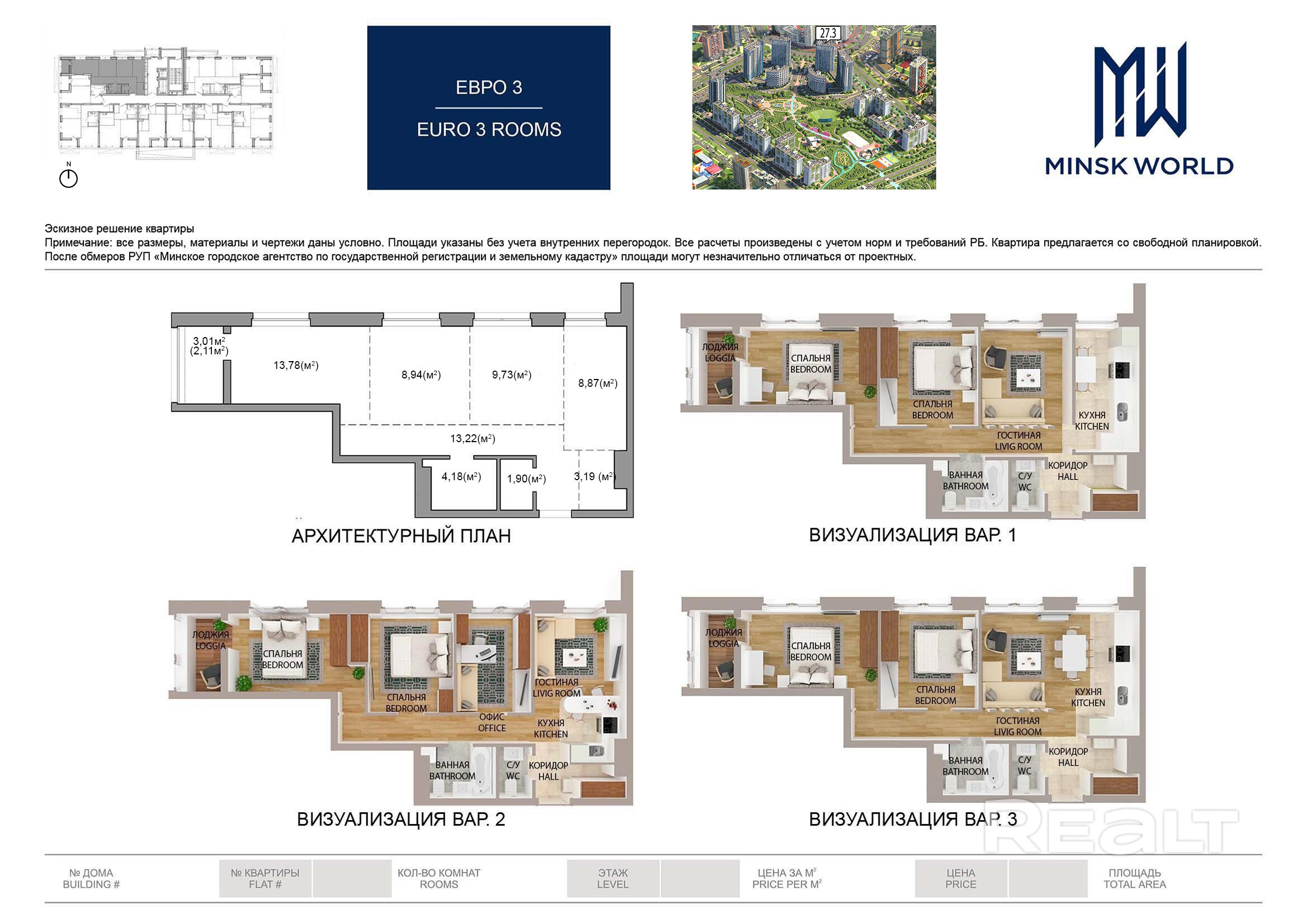 Квартира 50 в Минск Мир / Дом 27.3, площадью 65 кв.м.