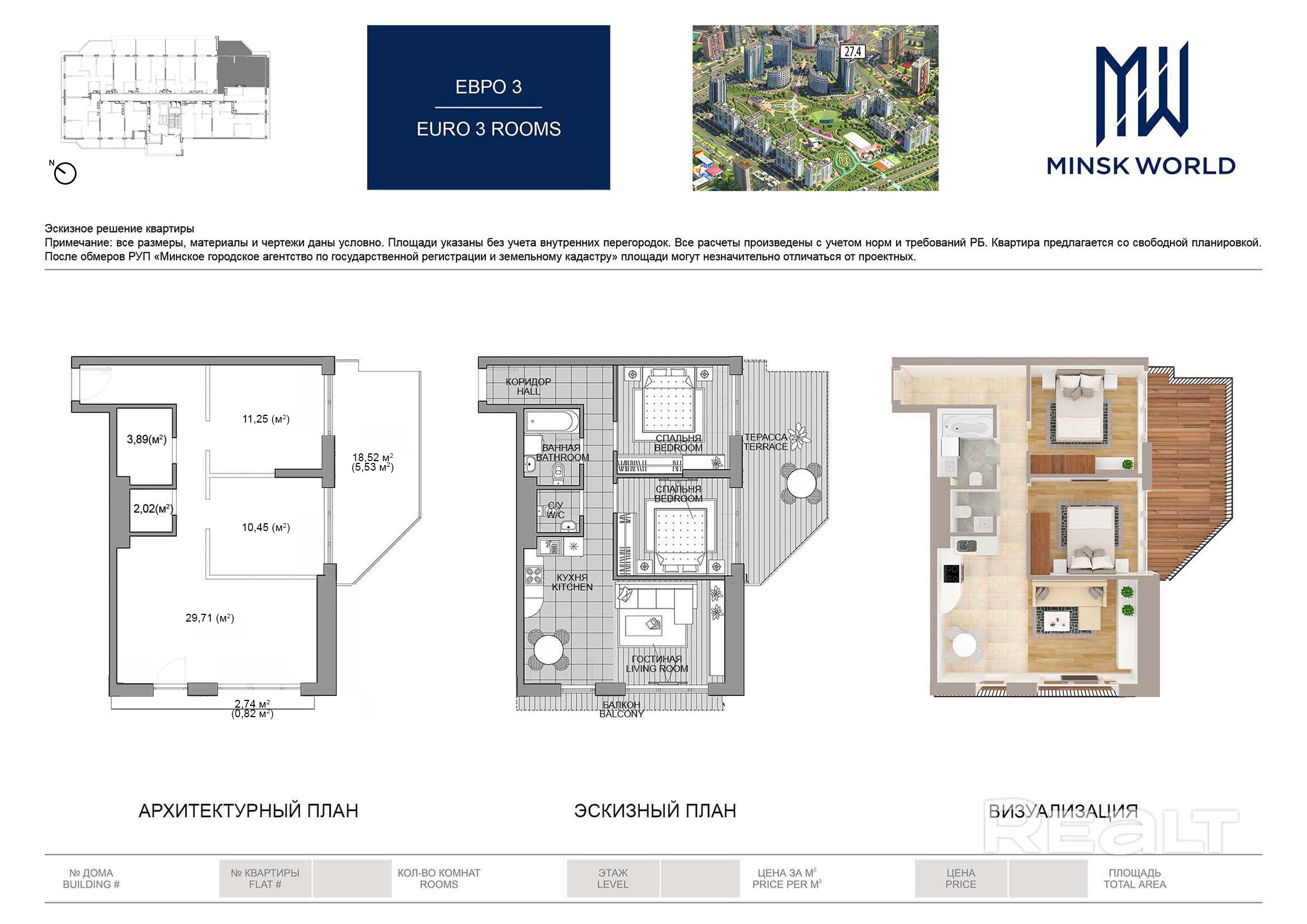 Квартира 4 в Минск Мир / Дом 27.4, площадью 62 кв.м.