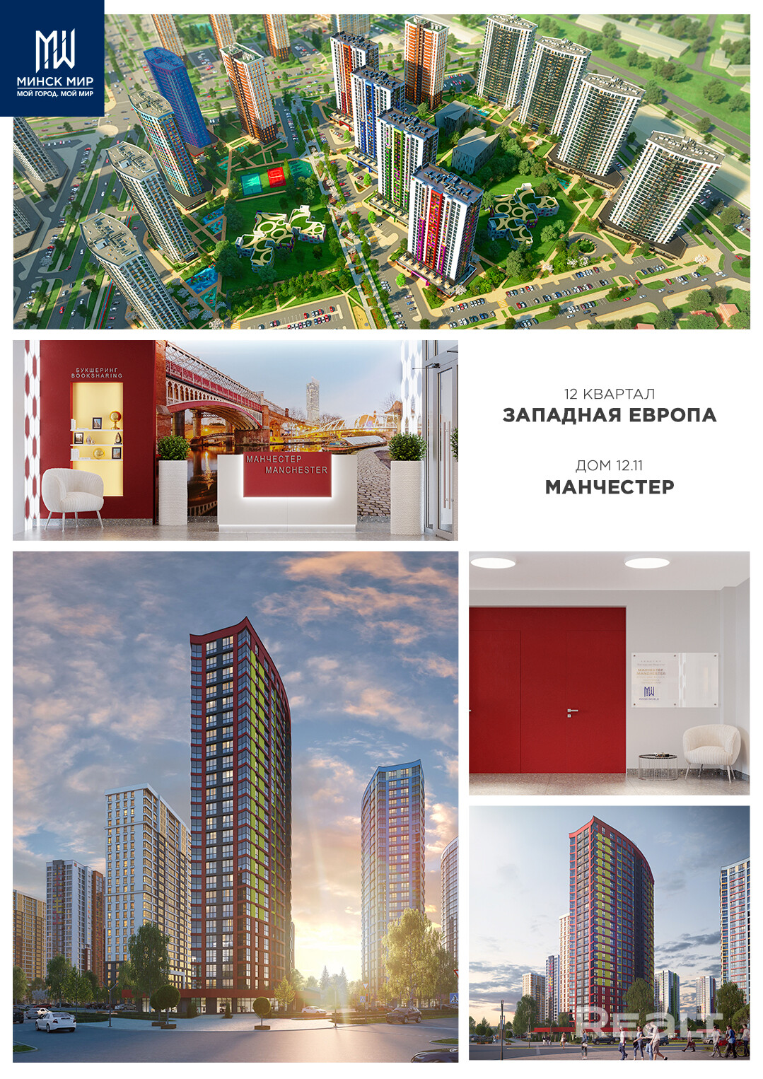 Элитный дом «Манчестер» возводится в квартале «Западная Европа» многофункционального комплекса Minsk World. Именно здесь для удобства жителей реализуется концепция «15-минутного города». Она предполагает шаговую доступность необходимых объектов инфраструктуры.