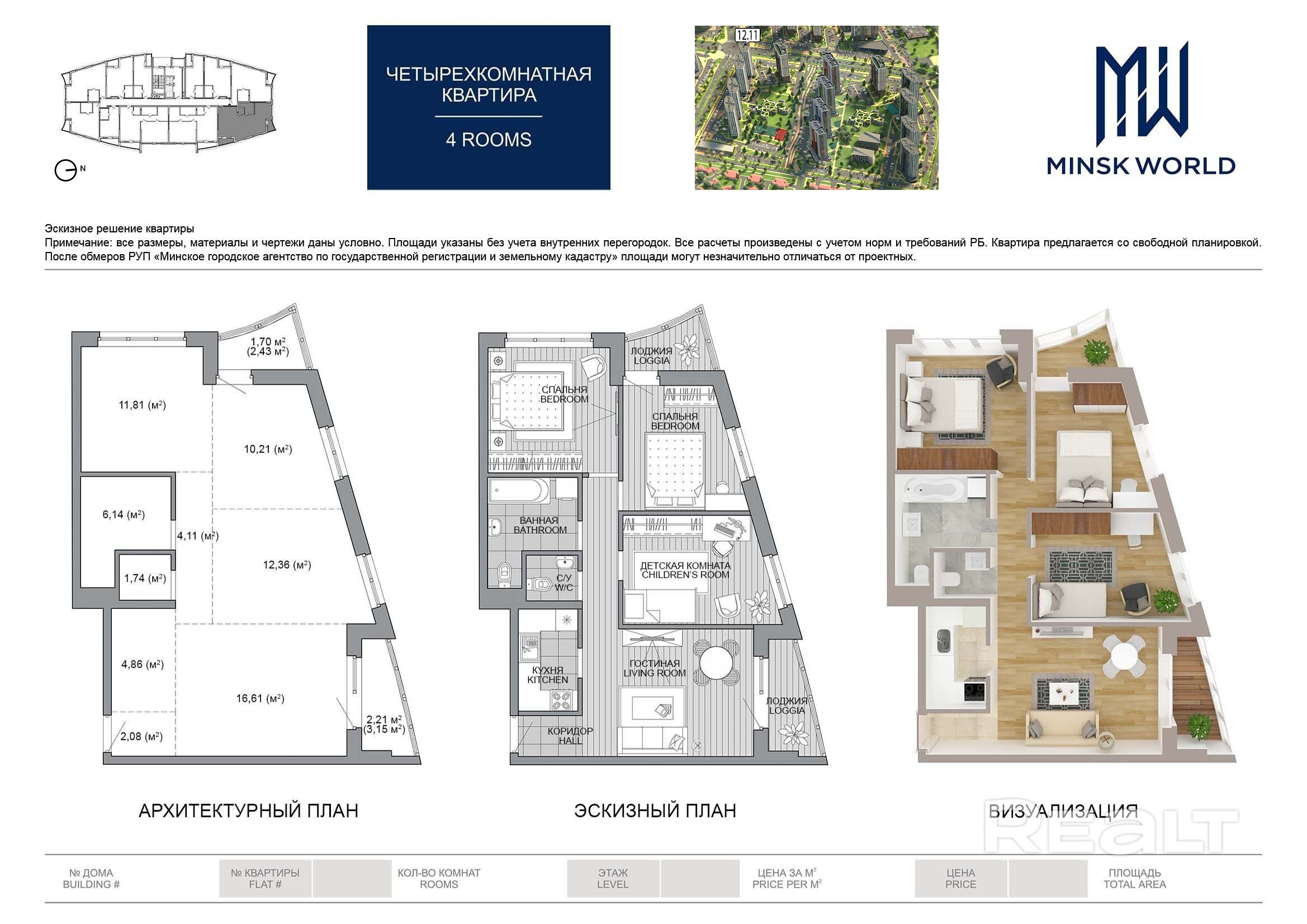 Квартира 4 в Минск Мир / Дом 12.11, площадью 74 кв.м.