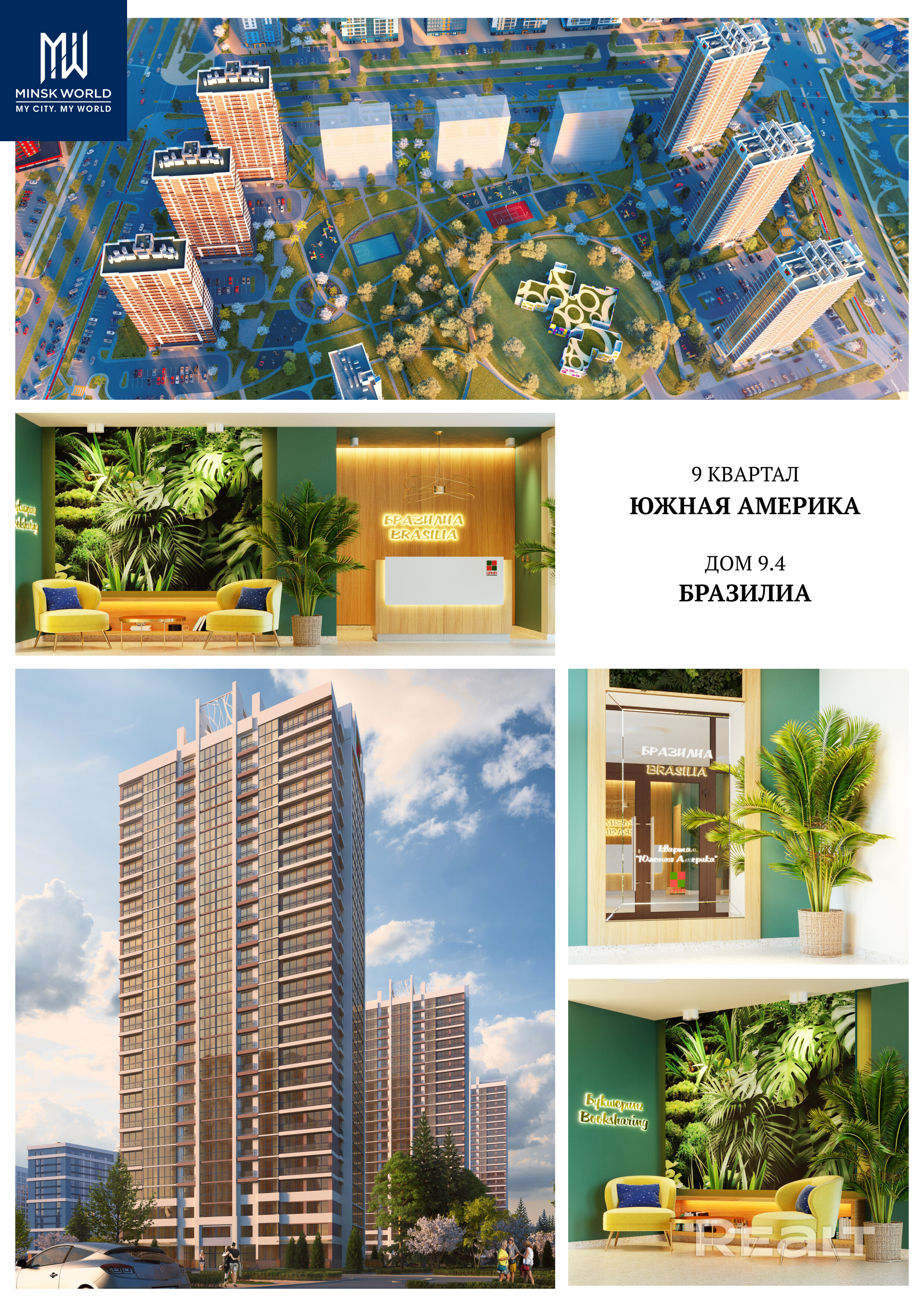 В квартале «Южная Америка», где будет расположен дом «Бразилиа», будет всё необходимое для того, чтобы новосёлы могли прочувствовать высокий уровень комфорта и благоустроенности. Здесь появится детский сад с бассейном на 270 мест. На прилегающей территории, где нет транзитного движения автомобилей, обустраиваются детские городки и зоны воркаута. Парковочные места расположены преимущественно с внешней стороны квартала. Это делает игры и прогулки малышей безопасными. Через дорогу запроектирован паркинг и магазины. Возвращаясь домой из офиса, можно будет припарковать автомобиль и купить всё необходимое для ужина.
