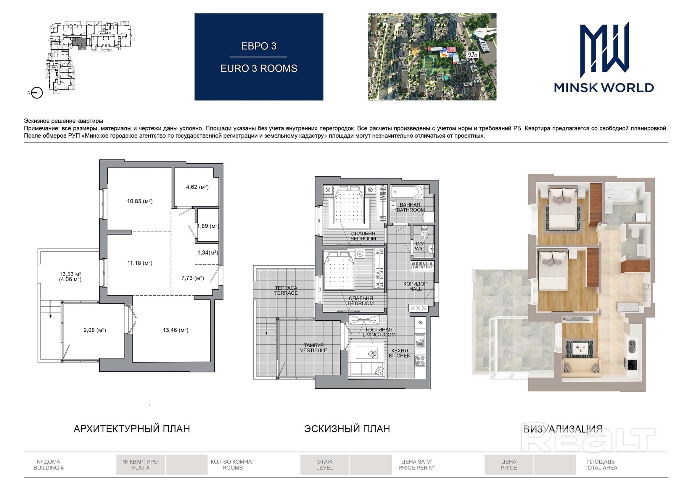 Квартира 145 в Минск Мир / Дом 9.7, площадью 64 кв.м.