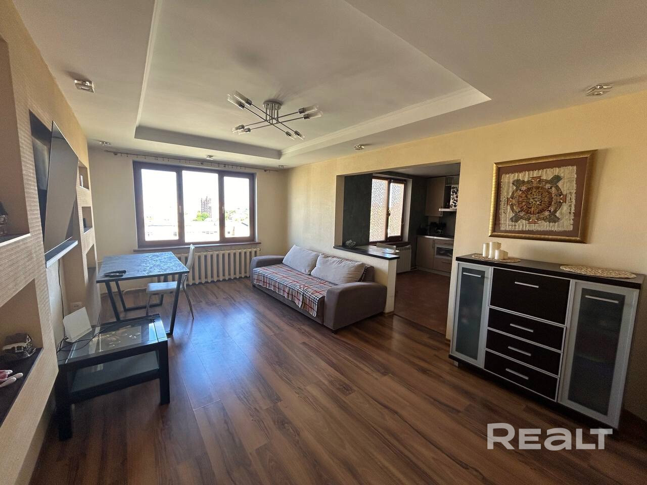 Квартира в доме улучшенного проекта, площадью 71 метр квадратный. Сделан хороший ремонт. На полу в жилых комнатах и коридоре ламинат, в санузлах, на кухне и зоне прихожей – плитка.