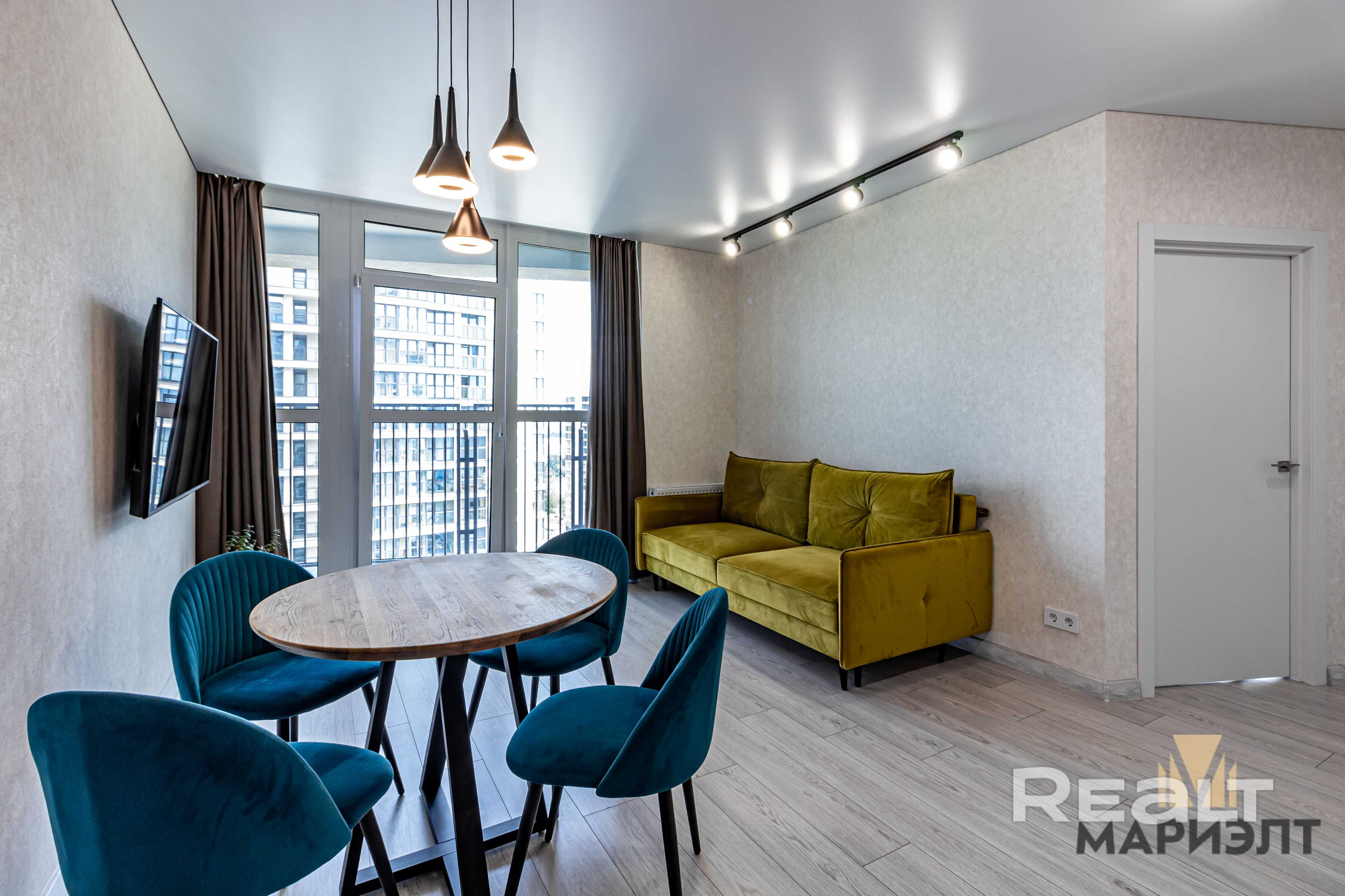 Кухня оснащена удобной системой хранения. Холодильник и вытяжка встроены. Варочная поверхность Hansa на две конфорки. Духовой шкаф (полноразмерный) - Bosch. Также установлен фильтр очистки воды.