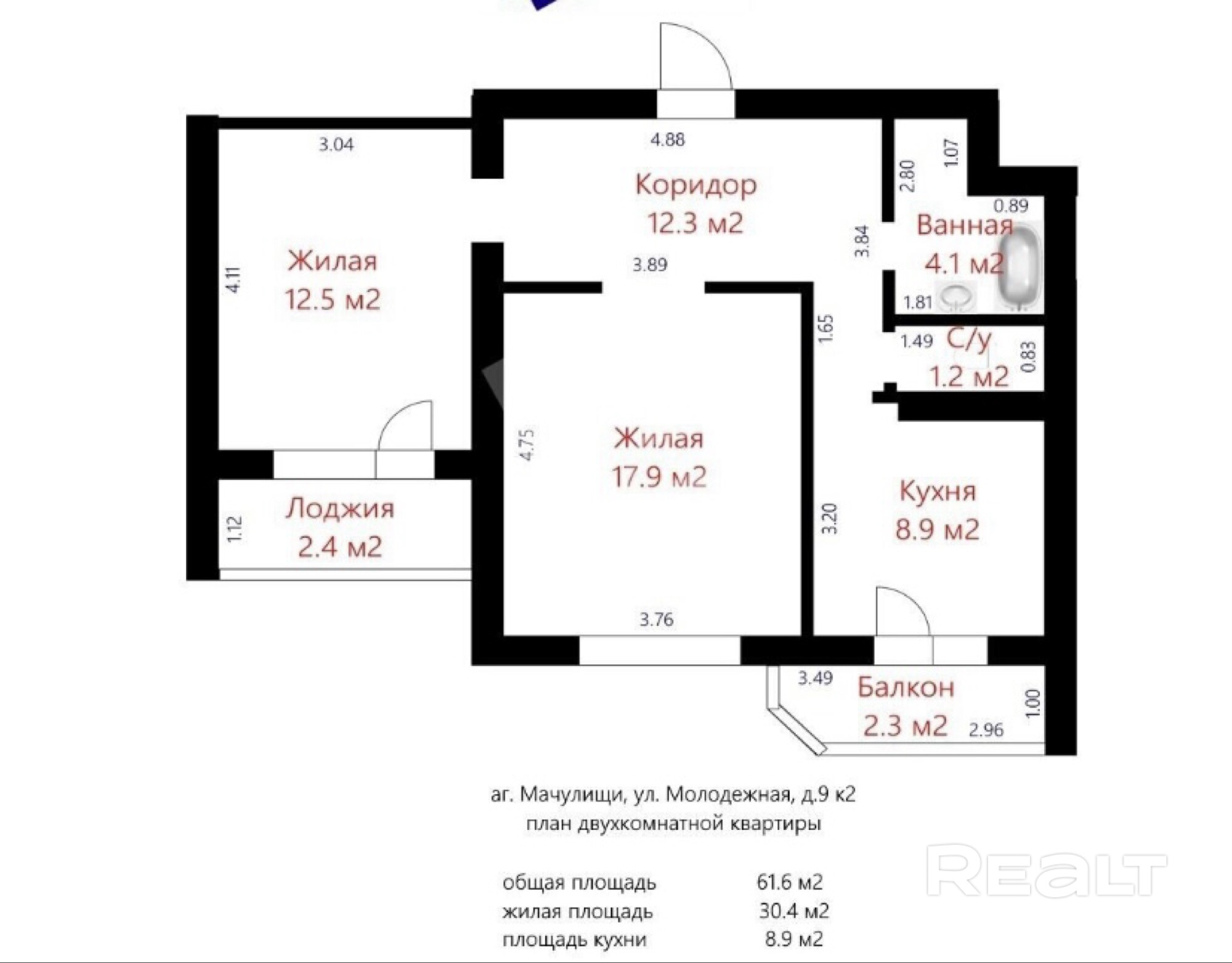 61.6 м²