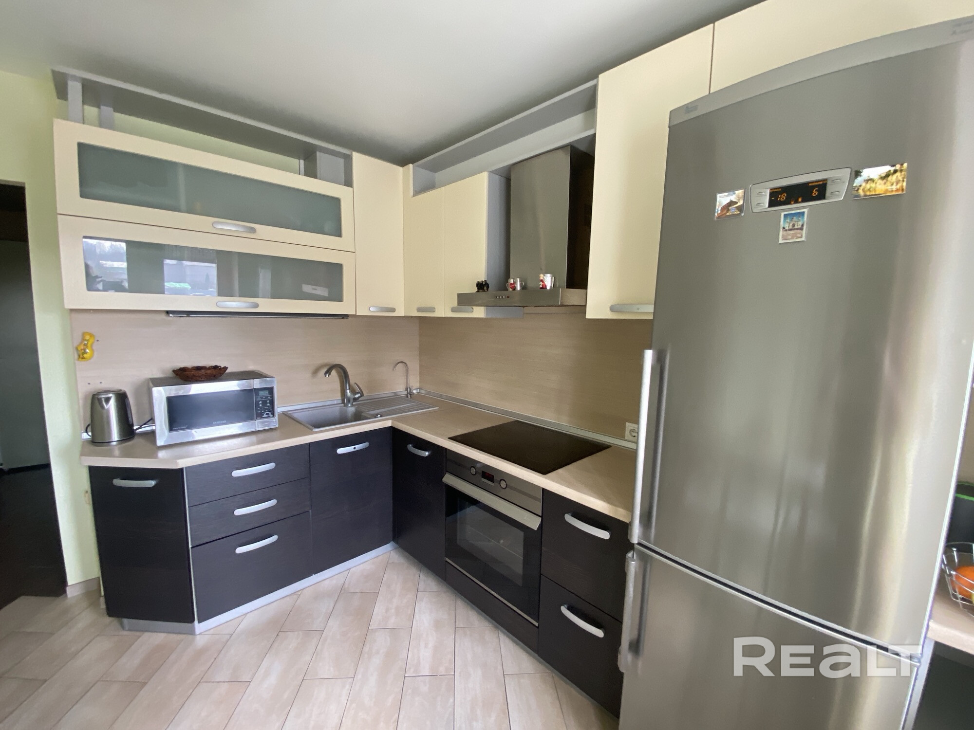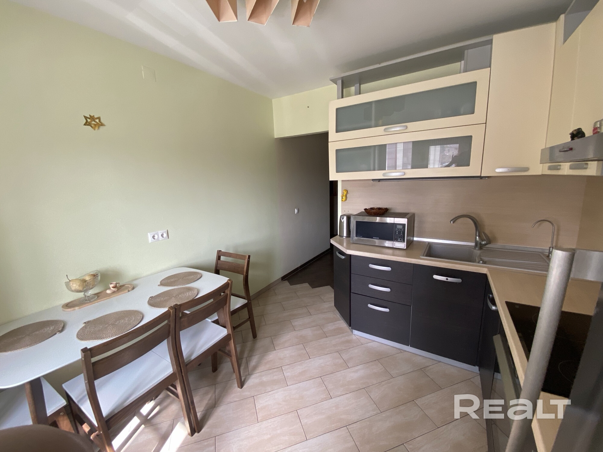 Квартира с ремонтом в кирпич. доме.2 лоджии. В 2 мин.ходьбы- детский сад с бассейном. Обслуживается ТСЖ. Пол ламинат,в сан узле, коридоре, кухне плитка с подогревом. Кухня выполнена из МДФ,который не оставляет разводов,укомплектована техникой Teka. Покупателям остается вся встроенная мебель( 2 шкафа-купе, рабочий кабинет,кухня с техникой , кровать с тумбами. Ост. маршруток-2 мин от дома,а также ж/д ст. 8 мин ходьбы, 20 мин езды до ст.Минск- пассажир.Агентов просьба не беспокоить без покупателей.
