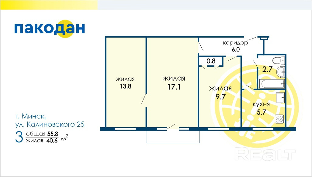 Представляем Вашему вниманию трехкомнатную квартиру в зеленом и благоустроенном районе г. Минска.