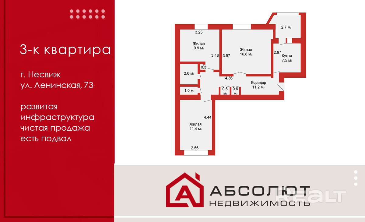 Продажа 3-к квартиры в г. Несвиж, ул. Ленинская, 73