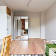 Интерьер — новый дизайнерский ремонт в скандинавском стиле с элементами лофта. Натуральное дерево, камень и металл подчеркивают качество и долговечность отделки. Кухня из массива ясеня, полы и окна из лиственницы, мраморные подоконники, сантехника Keramag, дизайнерский свет из Германии, техника – Bosch. Центральный акцент — стол ручной работы из слэба капового тополя. Очищенная кирпичная кладка, металлическая перегородка и открытые балки придают пространству характер и уникальность.