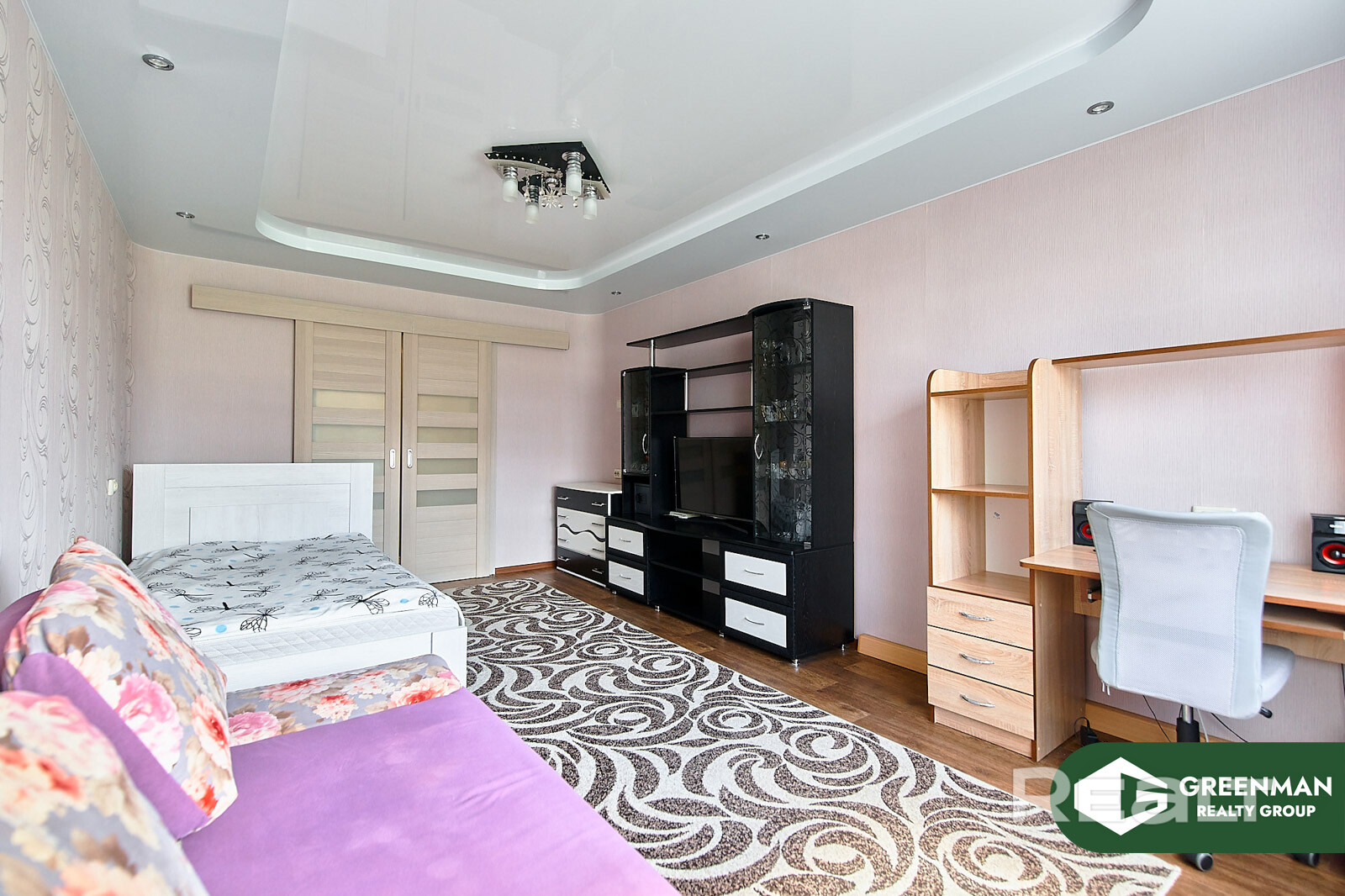 Комната - 17,9 м.кв., кухня – 9,0 м.кв; высота потолка -2,51м. Состояние квартиры: отличный ремонт;установлены счетчики воды,современные межкомнатные двери в светлых тонах, новая входная дверь; в ванной и туалете качественный ремонт, натяжные потолки. Дом расположен в тихомместе, хорошее транспортное сообщение, остановка транспорта рядом, ст.метротранспортом 8 минут.