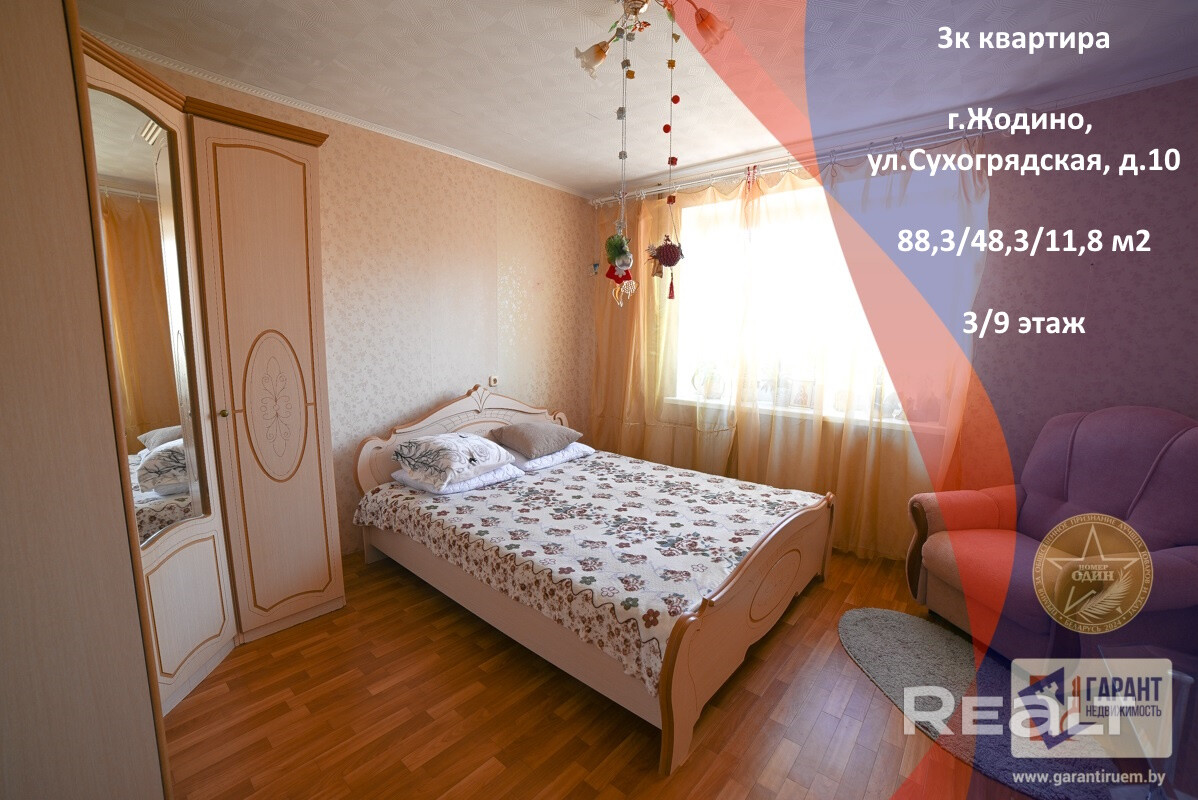 Уютная 3-комнатная квартира на 3 этаже 9-этажного кирпичного дома г. Жодино, ул. Сухогрядская 10