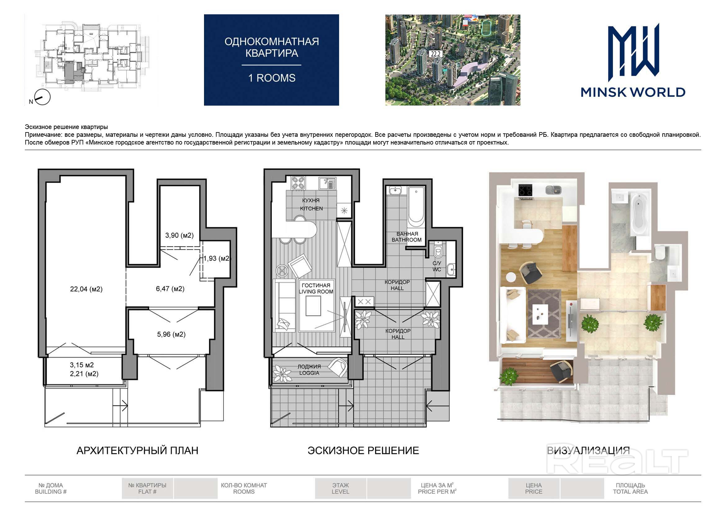 Квартира 1 в Минск Мир / Дом 22.2, площадью 46 кв.м.