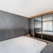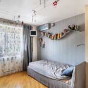 Просторная спальня с гардеробной предлагает вам комфорт и порядок, окна выходят на две стороны.