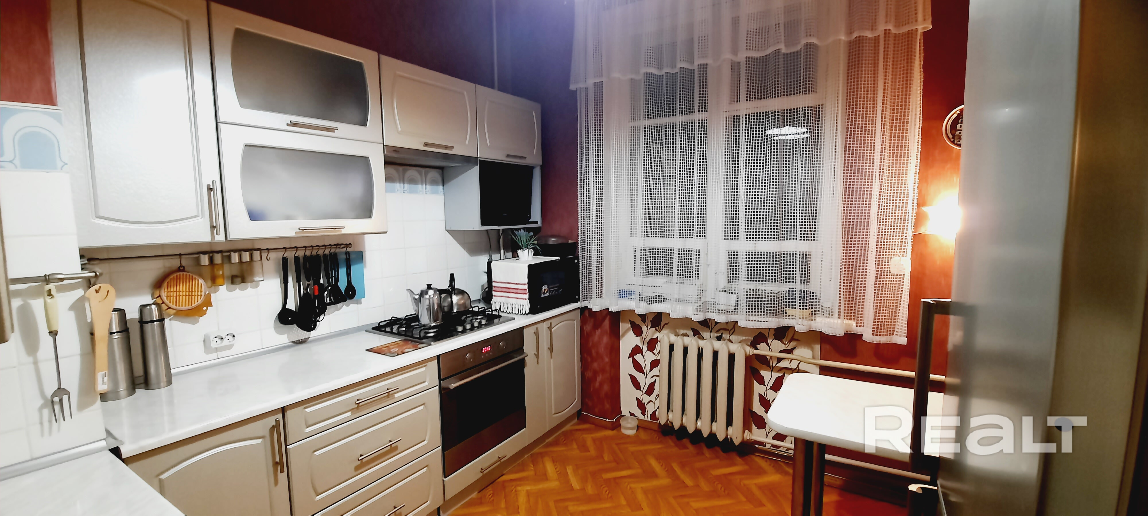 Квартира расположена в 3 этаже 4хэтажного кирпичного дома. Хорошая планировка квартиры- окна выходят на две стороны, три раздельные просторные комнаты, большая кухня 8.5 м2, раздельный санузел. Высота потолков более 3 м ( сохранена лепнина). Во всей квартире паркетные полы. Установлена современная угловая кухня с бытовой техникой.