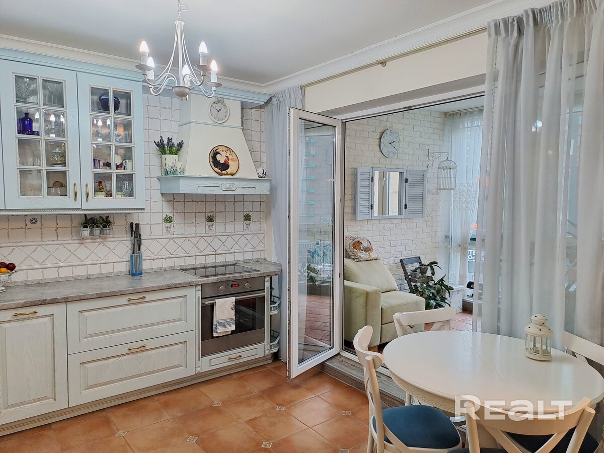 Уютная кухня имеет выход на огромный балкон, где сделана зона отдыха и релакса, есть подогрев пола. На балконе реализован декор итальянской провинции. Вечером открывается приятный вид на ЖК Четыре сезона. Мягкая подсветка делает вид живописным. Рядом с домом будет метро (через сквер), ведется строительство.