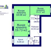 Квартира, общей площадью 84.16 кв.м.,жилая площать составляе 54.49 кв.м. Комнаты достаточно просторные  19.73 кв.м.,18.68 кв.м. и  15.17 кв.м.Кухня 8.28 кв.м. В квартире имеется прихожая 10.5 кв.м. и внутренний коридор 4.25 кв.м.Квартира оборудована двумя встроенными шкафами 1.9  и   0.91кв.м.Развитая инфроструктура, в шаговой доступности ст.метро "Тракторный завод".Разумный торг!