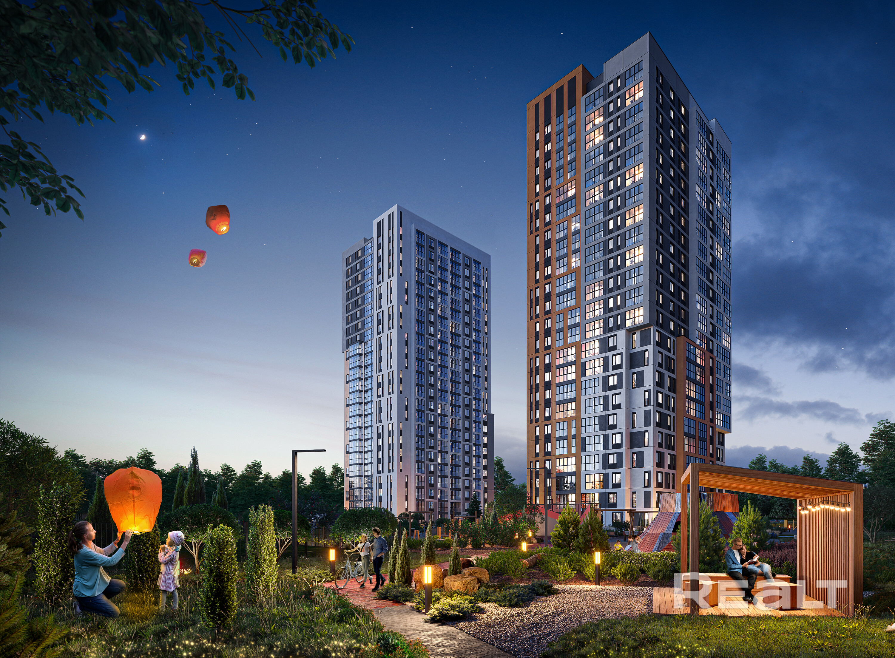 Центральный двор комплекса – это идеальное место для отдыха и активного времяпровождения. Здесь вы найдете дизайнерские детские площадки, зону для барбекю, спортивные зоны, а также уникальный игровой комплекс в виде огромного вулкана. Все участки двора функционально разграничены, позволяя взрослым наслаждаться отдыхом, пока дети играют.