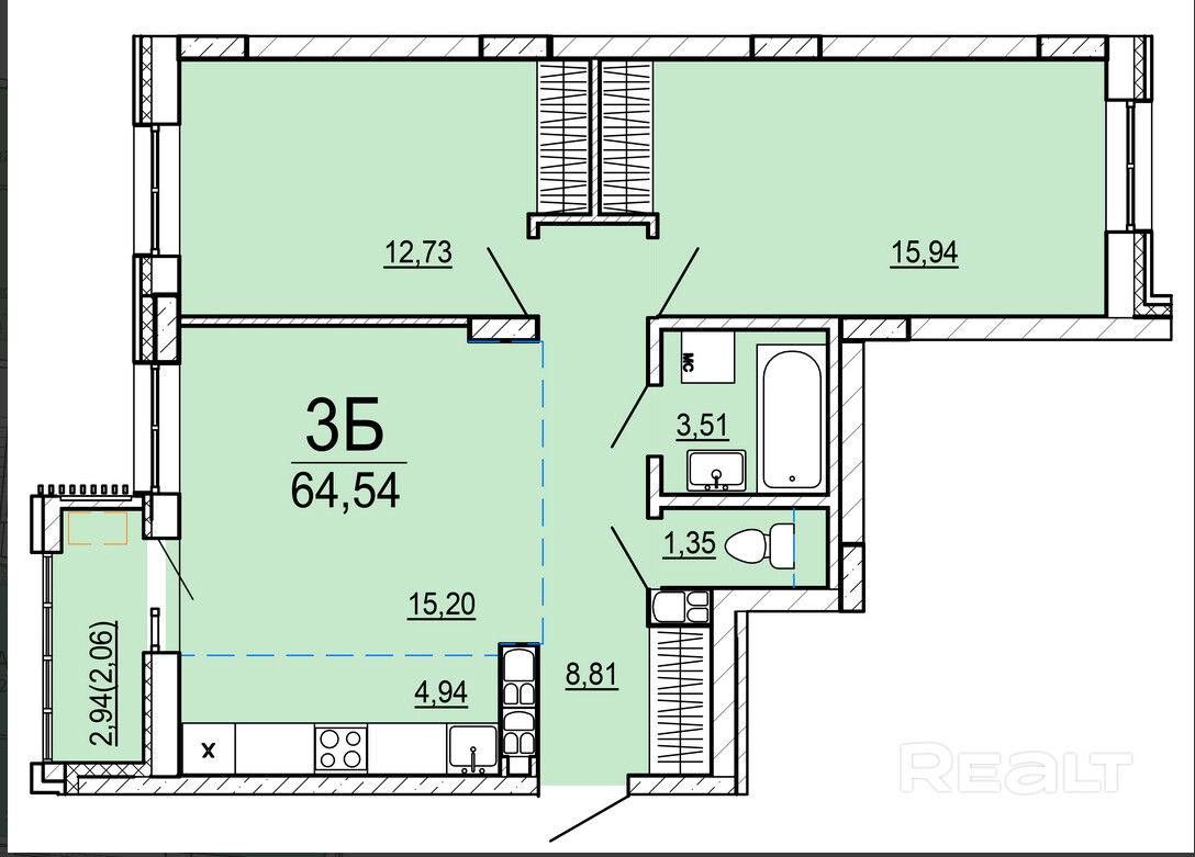 2.94 м²