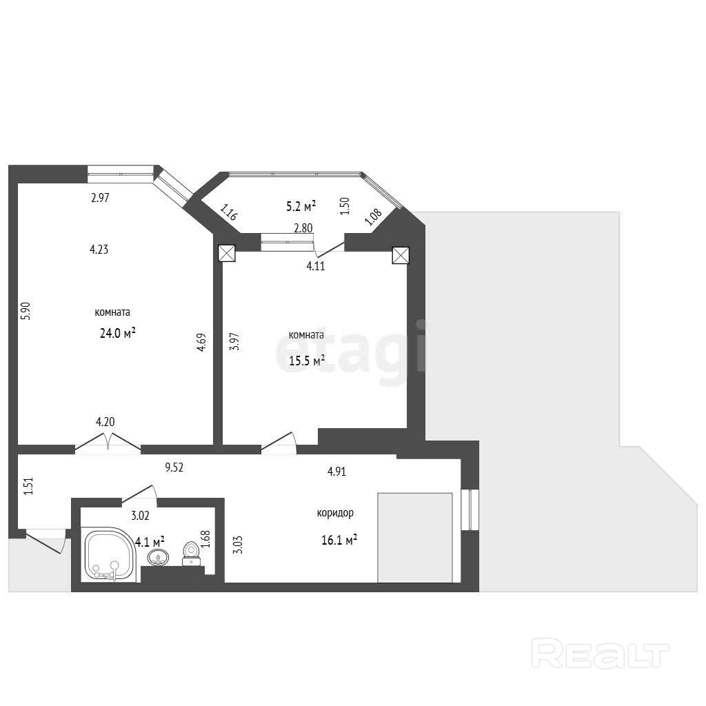 - Раздельных комнат