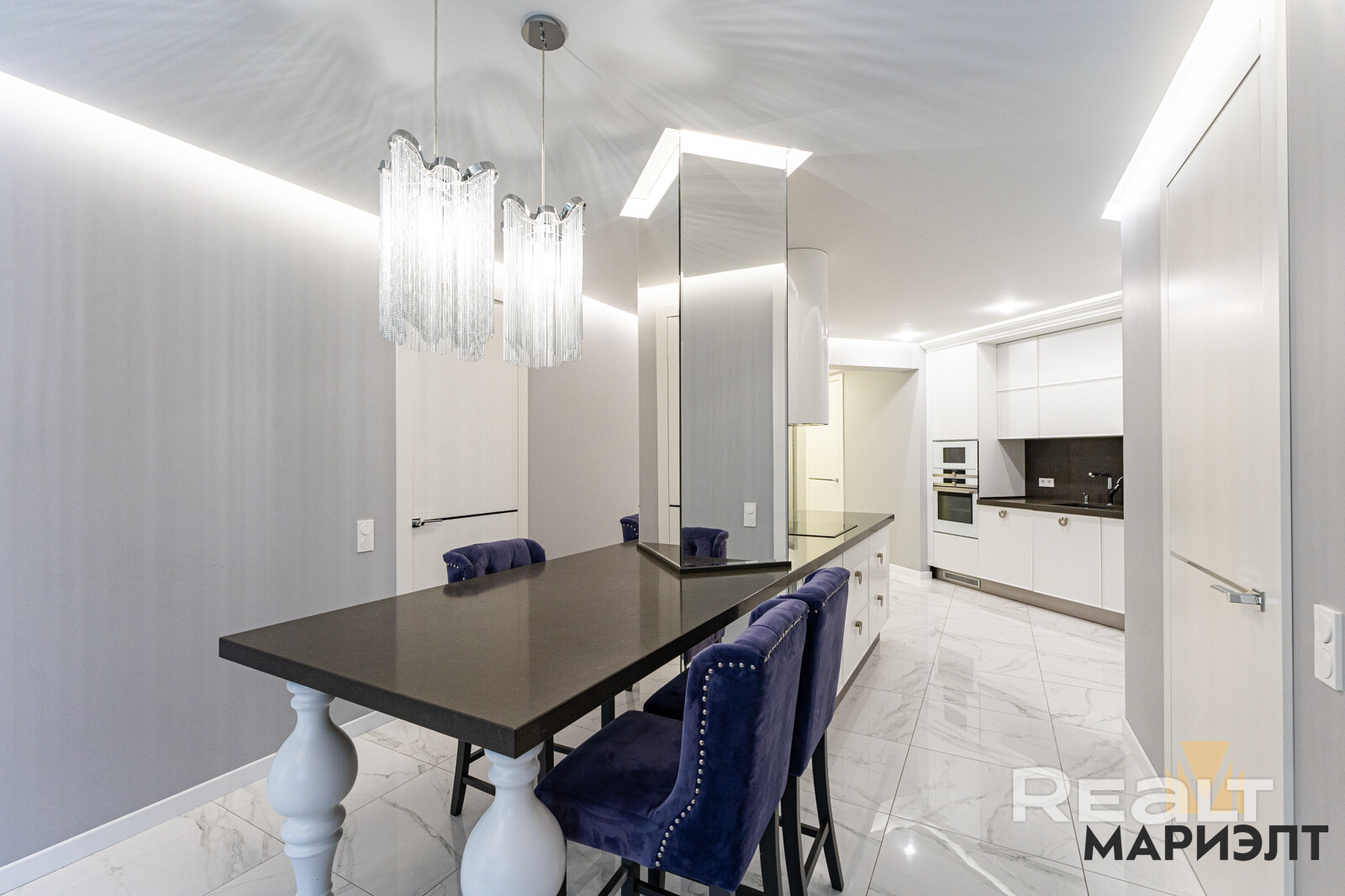 • Качество: Паркет Goswik, сантехника Villeroy Boch, керамогранит из Испании, техника от Siemens, Bosch и Liebherr. Кухонный остров и столешница из натурального камня, многоуровневое освещение и итальянские люстры создают атмосферу уюта и элегантности.