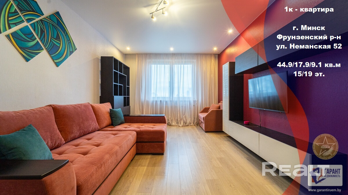 Продаём уютную и просторную однокомнатную квартиру улица Нёманская дом 52.