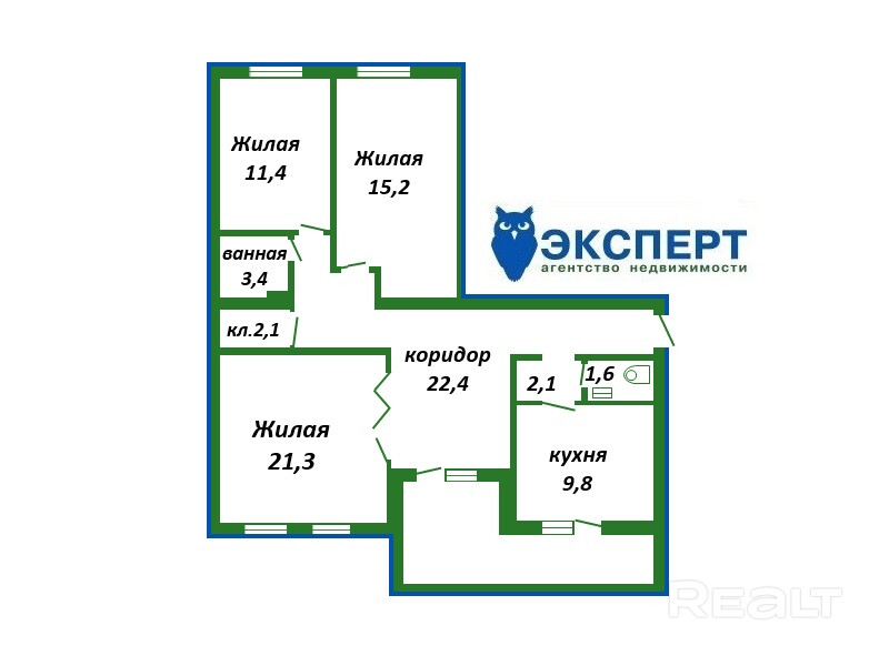 трехкомнатная квартира улучшенной планировки в кирпичном доме 1996 года постройки