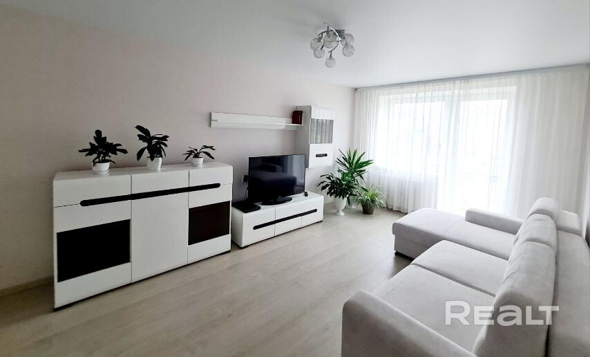 В квартире выполнен качественный ремонт в светлых тонах. На полу уложен износостойкий ламинат, в кухне плитка. В прихожей установлен вместительный шкаф.
